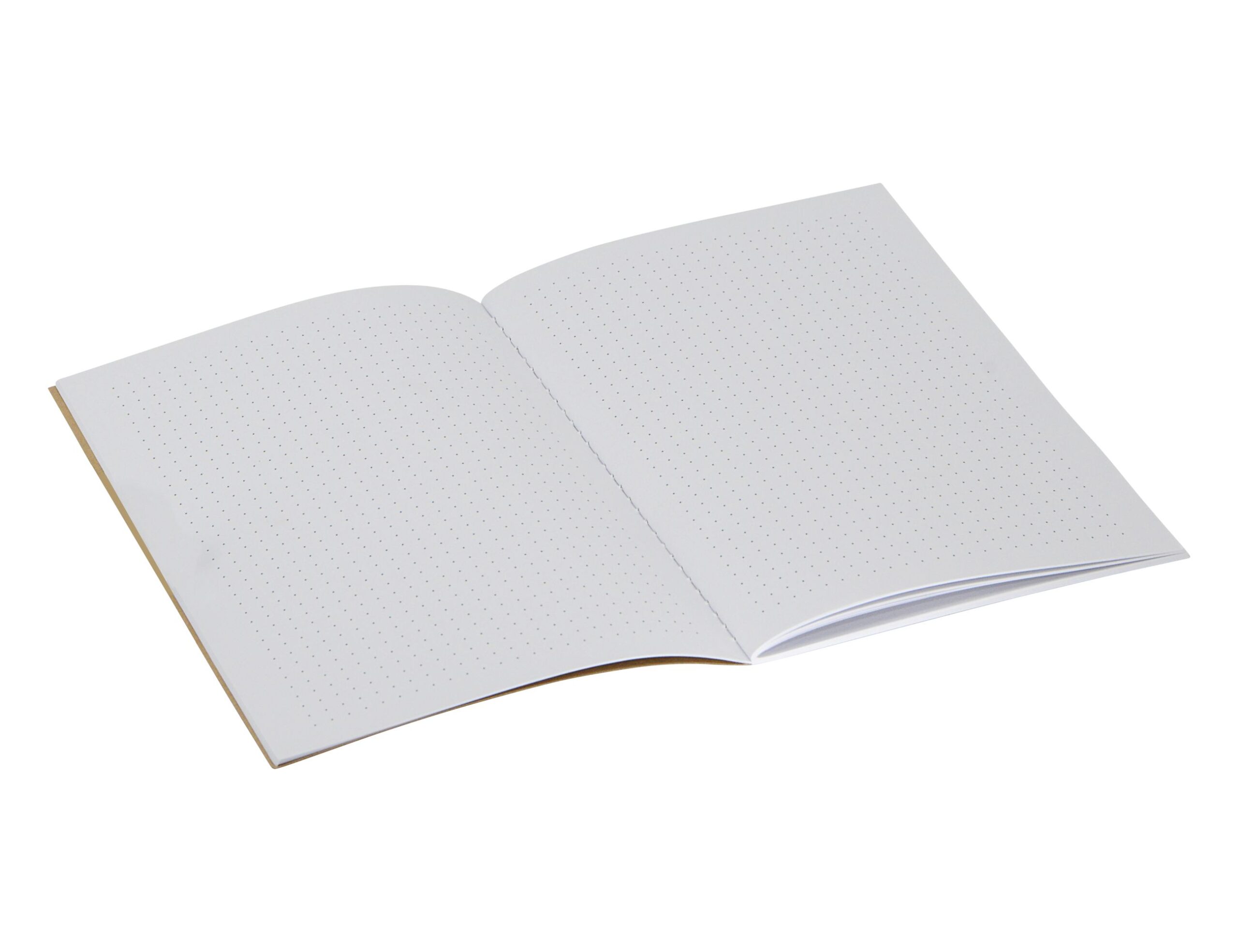 This A5 notebook features a 250gsm natural Kraft cover, 64 internal dotted page design (5mm x 5mm grid) as well as our eco-friendly cotton binding.