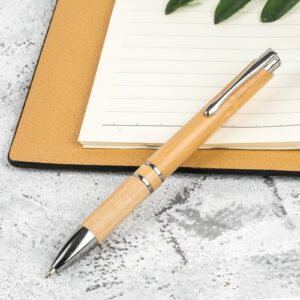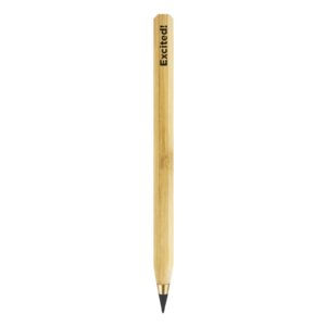 A natural wood box contains a set of 12 unpainted wood colouring pencils a pencil sharpener and an eraser the box has a sliding wood lid which is also a ruler with metric in centimetres and inches. The natural wood produces the variances in the grain pattern colour and branding.